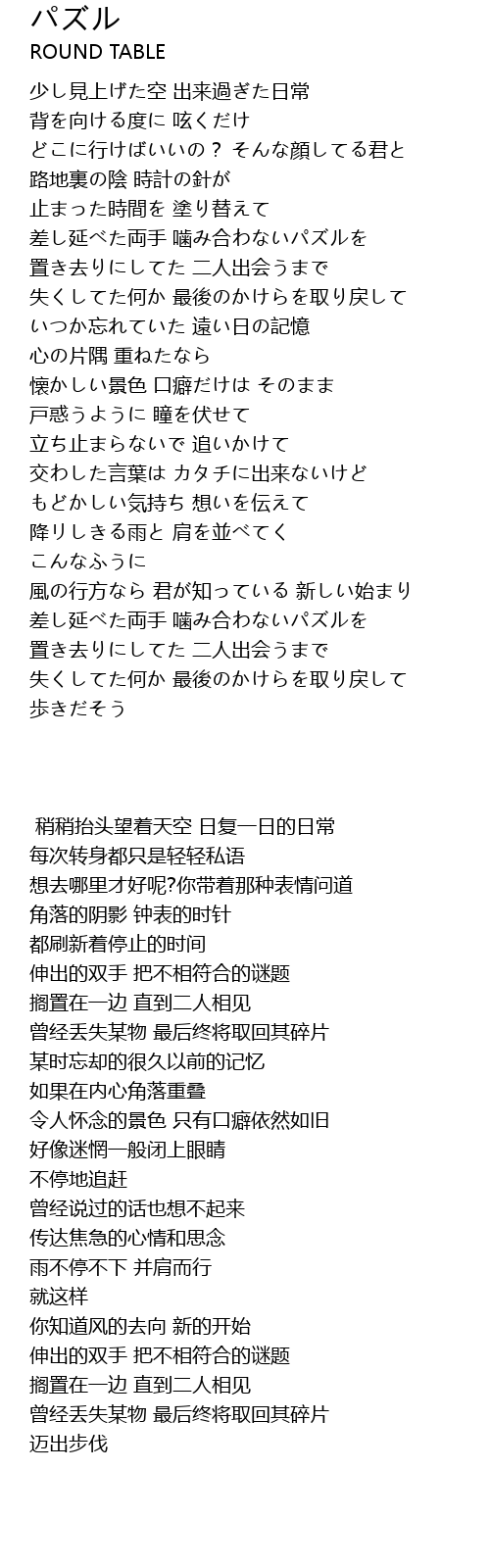 | [00:50.34] | 差し延べた両手 噛み合わないパズルを |