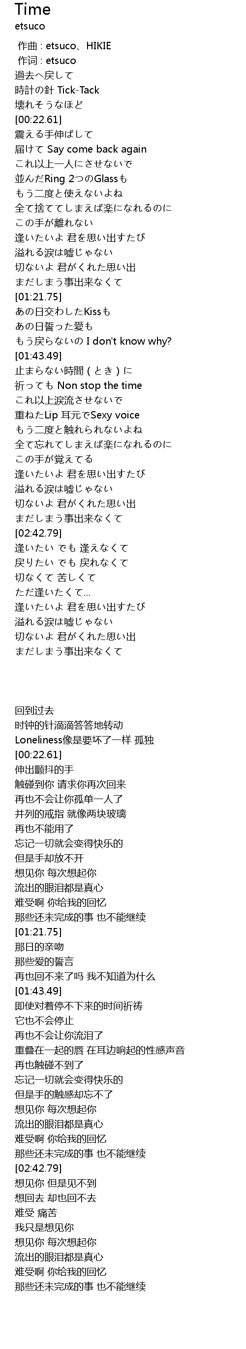 | [00:00.00] | zuo qu : etsuco HIKIE |