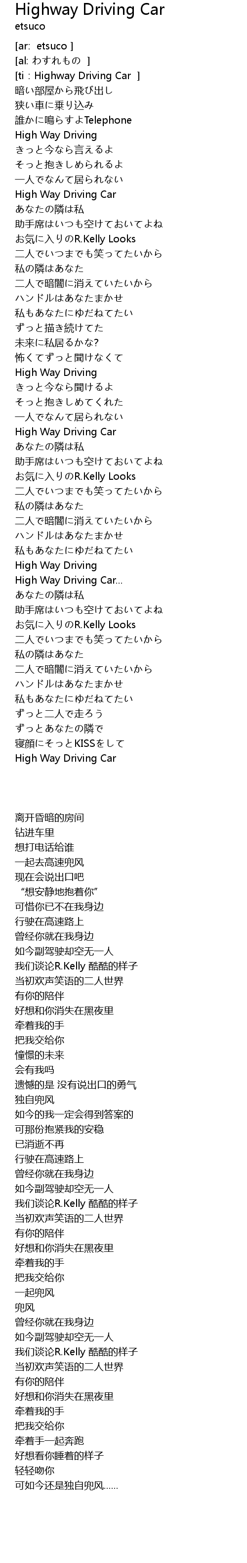 | [00:55.61] | 助手席はいつも空けておいてよね |