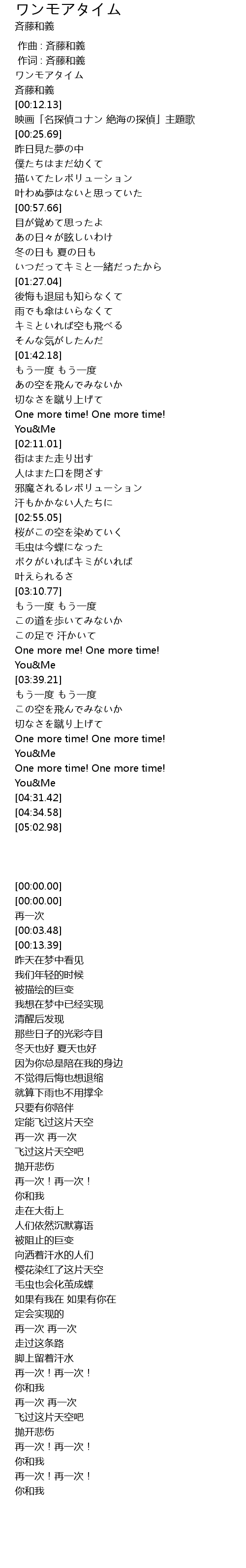 | [00:00.00] | ワンモアタイム |