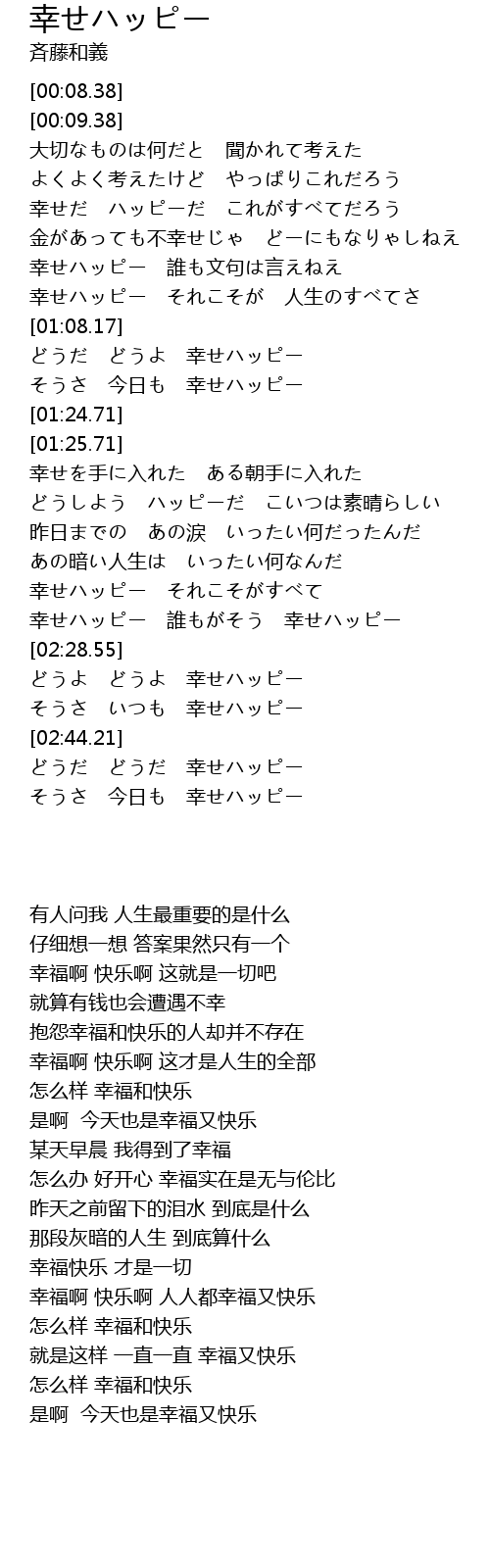| [02:29.43] | 怎么样 幸福和快乐 |