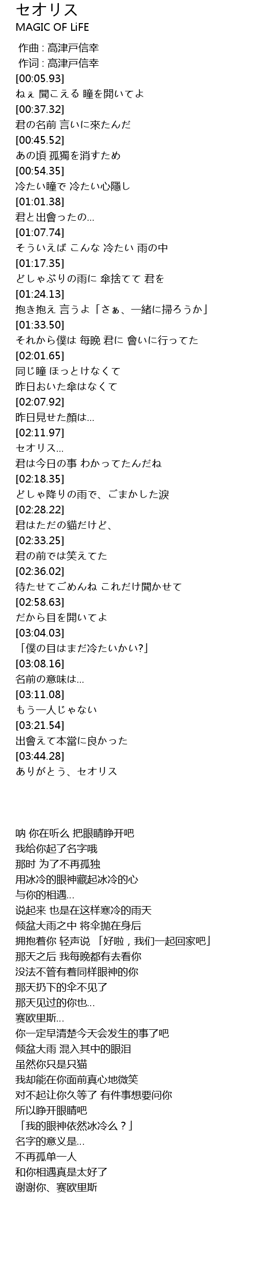 | [03:48.32] | 谢谢你、赛欧里斯 |