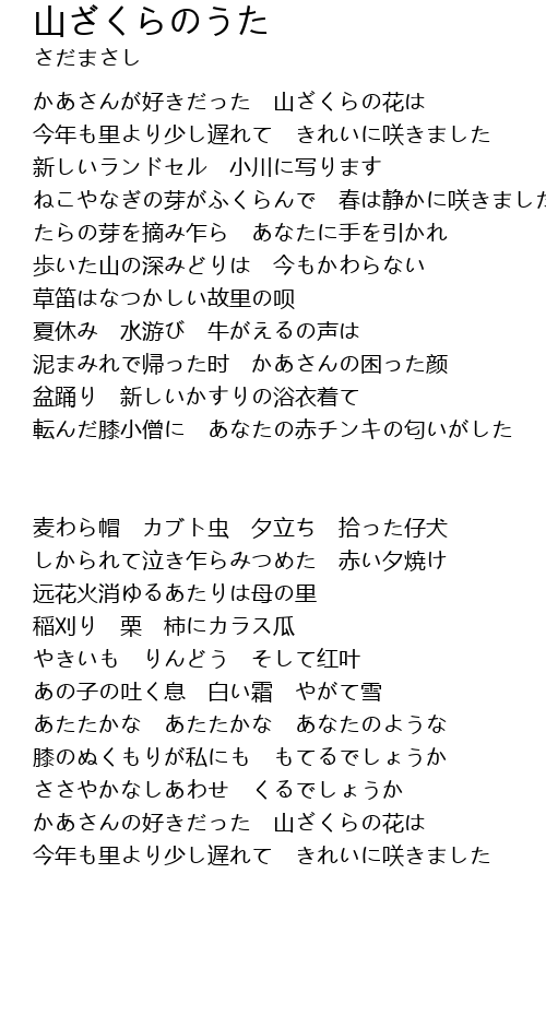 | 歌曲 | 山ざくらのうた |