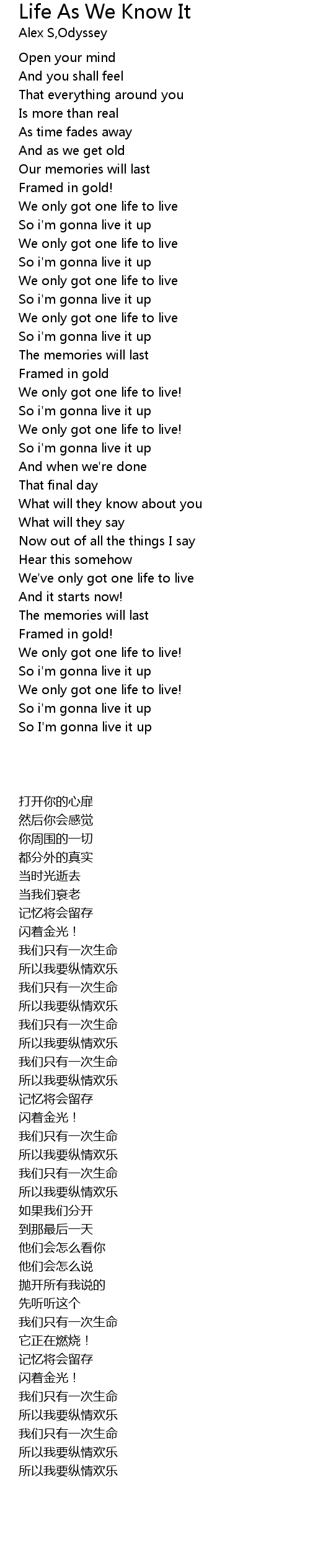 We only got one life to live! |