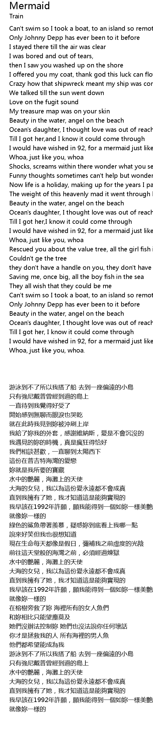 [02:46.579] 我早該在1992年許願,願我能得到一個如妳一樣美艷的美人魚