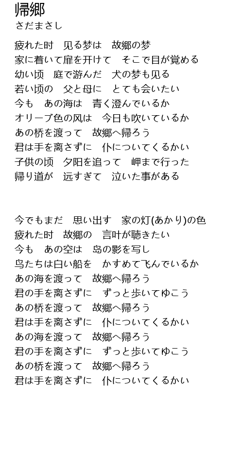 | 疲れた时 故郷の 言叶が聴きたい | |