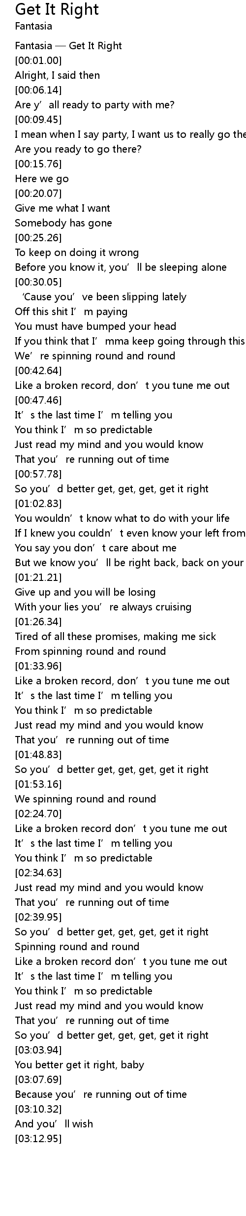 | [00:00.00] | Fantasia Get It Right |