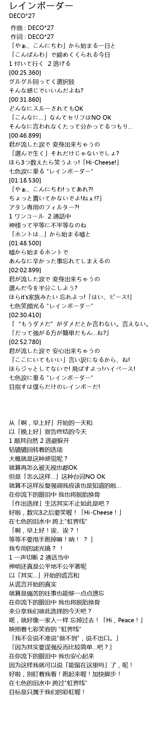 | [02:27.510] | 映照着七彩笑容的 "虹界线" |