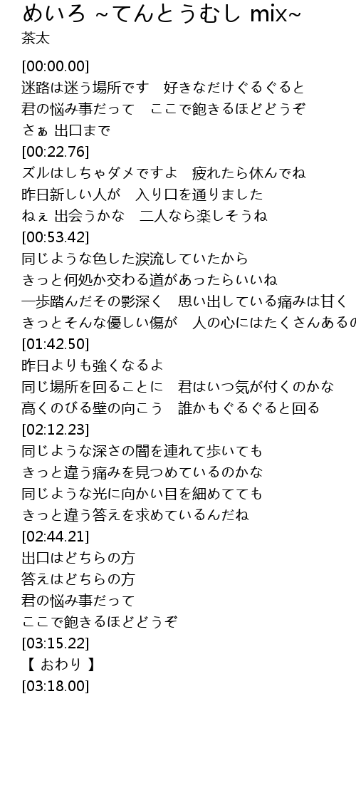 | 歌曲 | めいろ ~てんとうむし mix~ |