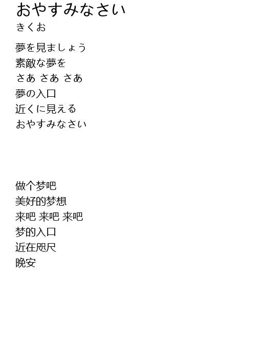 | 歌曲 | おやすみなさい |