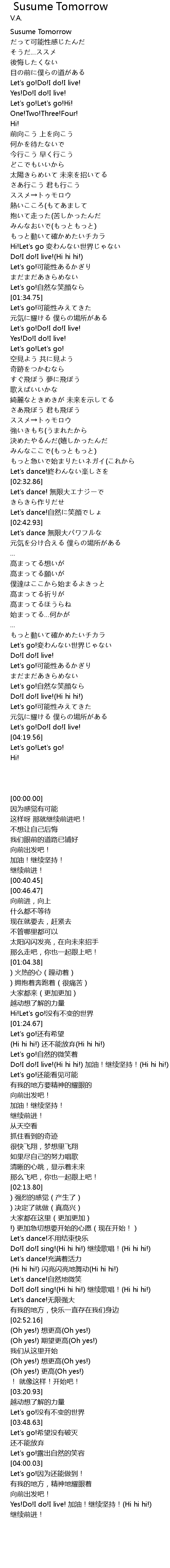 | [00:00.00] | Susume Tomorrow |