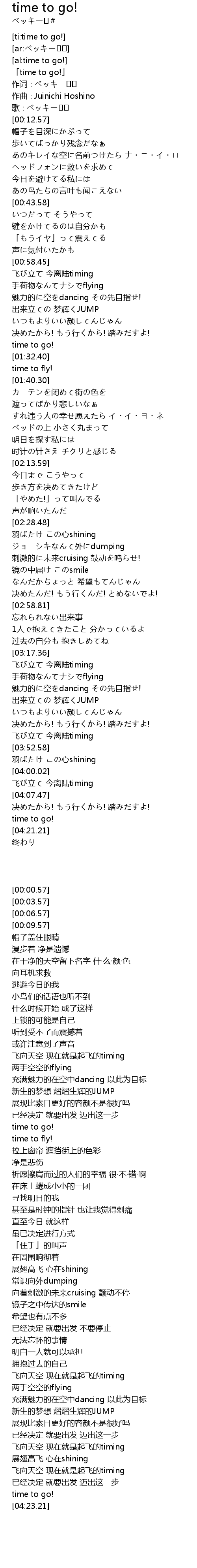 | [00:00.57] | 「time to go!」 |