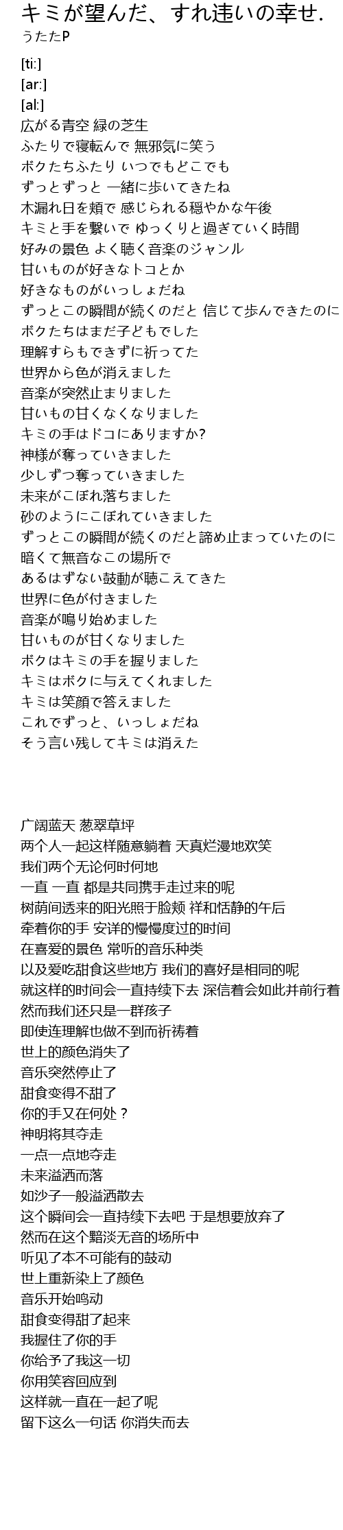 | 歌曲 | キミが望んだ、すれ违いの幸せ. |