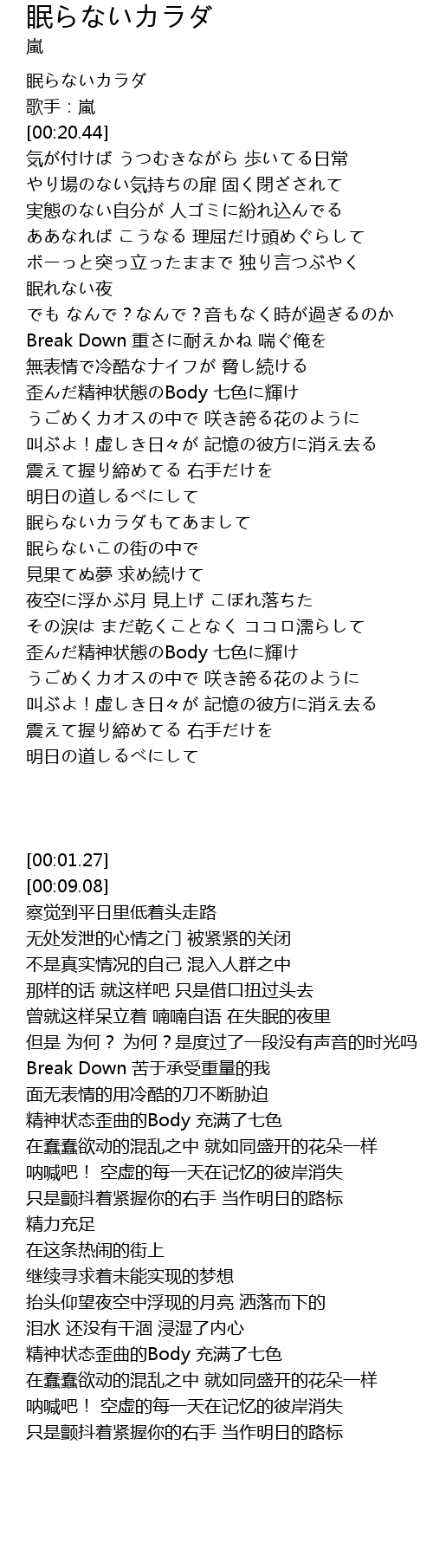 | [01:01.44] | Break Down 苦于承受重量的我 |