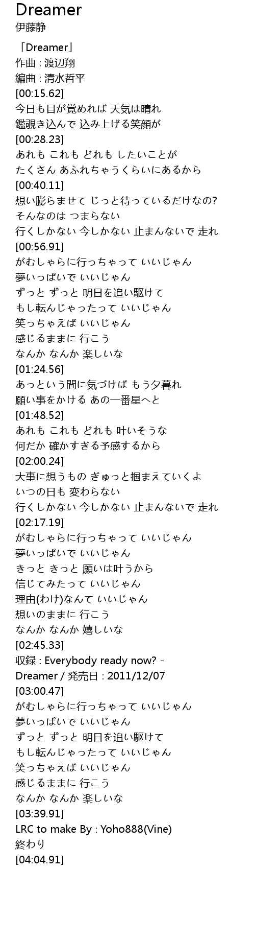 | [02:55.47] | Dreamer/発売日∶2011/12/07 |