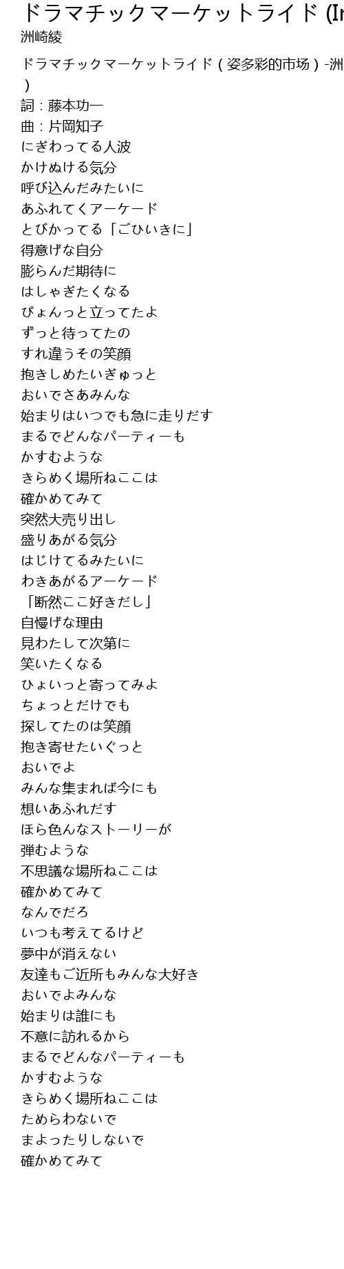 | [00:00.00] | ドラマチックマーケットライド(姿多彩的市场)-洲崎綾(Aya ) |