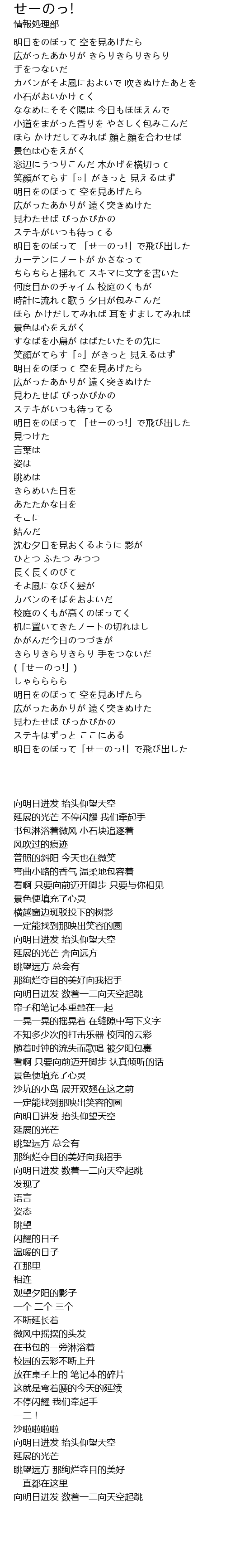 | [02:42.40] | 明日をのぼって 「せーのっ!」で飛び出した |