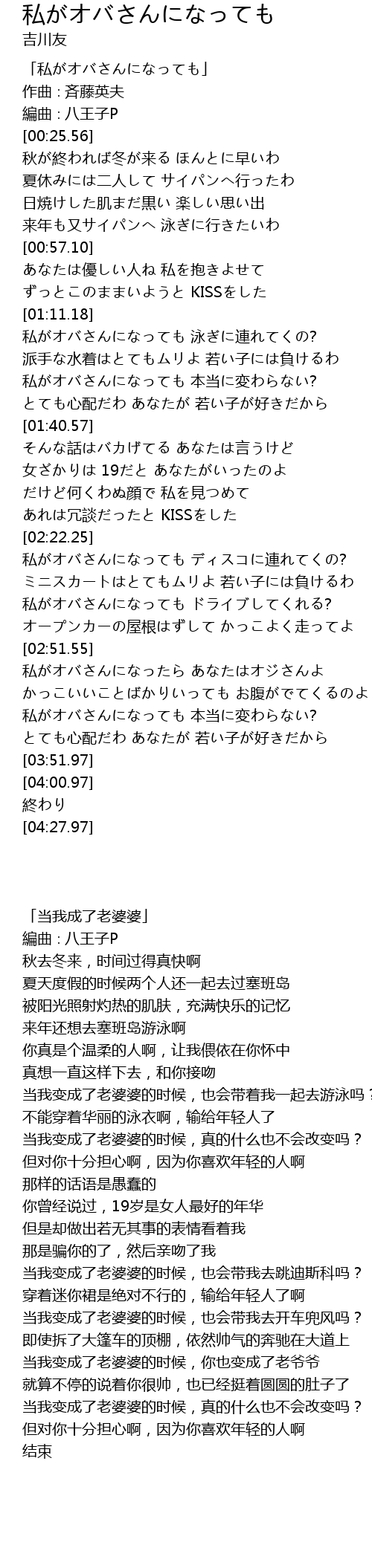 | [03:23.58] | 私がオバさんになったら あなたはオジさんよ |