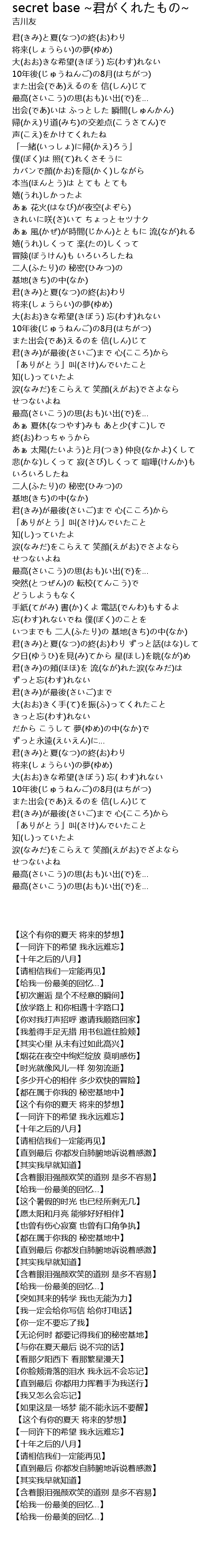 | [03:15.683] | いつまでも 二人(ふたり)の 基地(きち)の中(なか) |