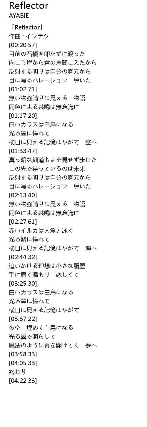 | [00:00.57] | 「Reflector」 |