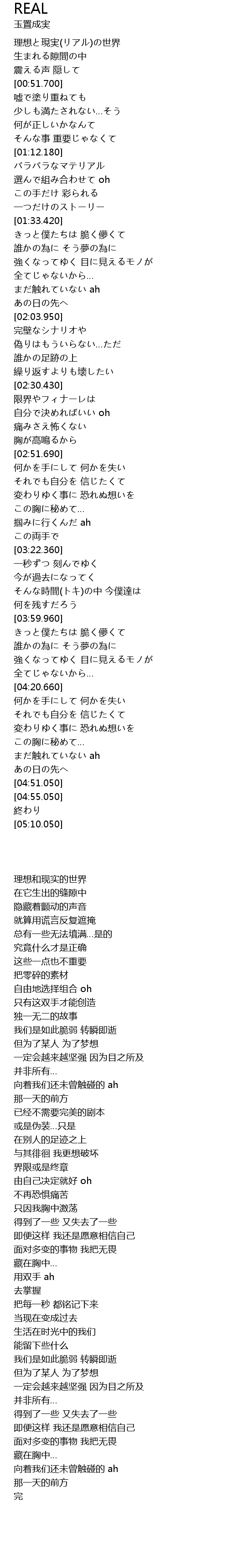 | [00:37.750] | 理想と現実(リアル)の世界 |