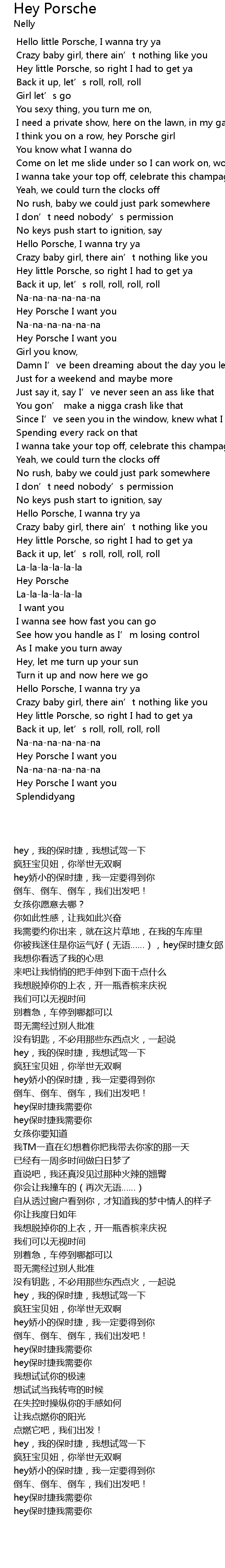 | [02:52.610] | hey,我的保时捷,我想试驾一下 |