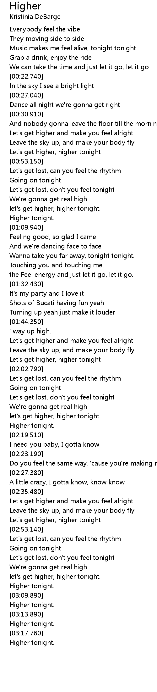 Let's get higher, higher tonight |