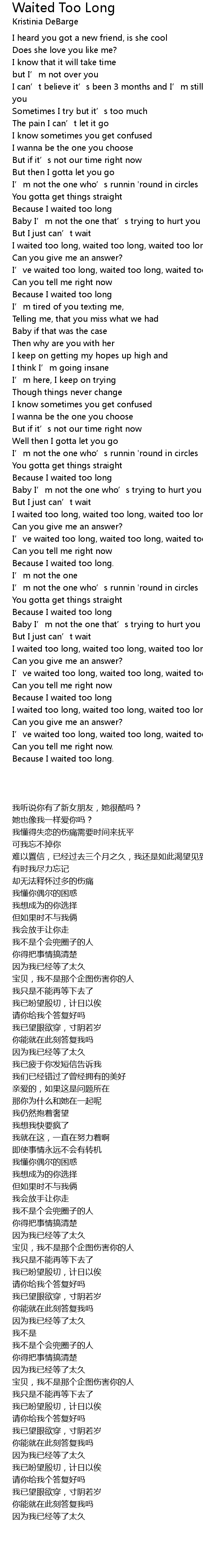 | [02:43.59] | I' ve waited too long, waited too long, waited too long |