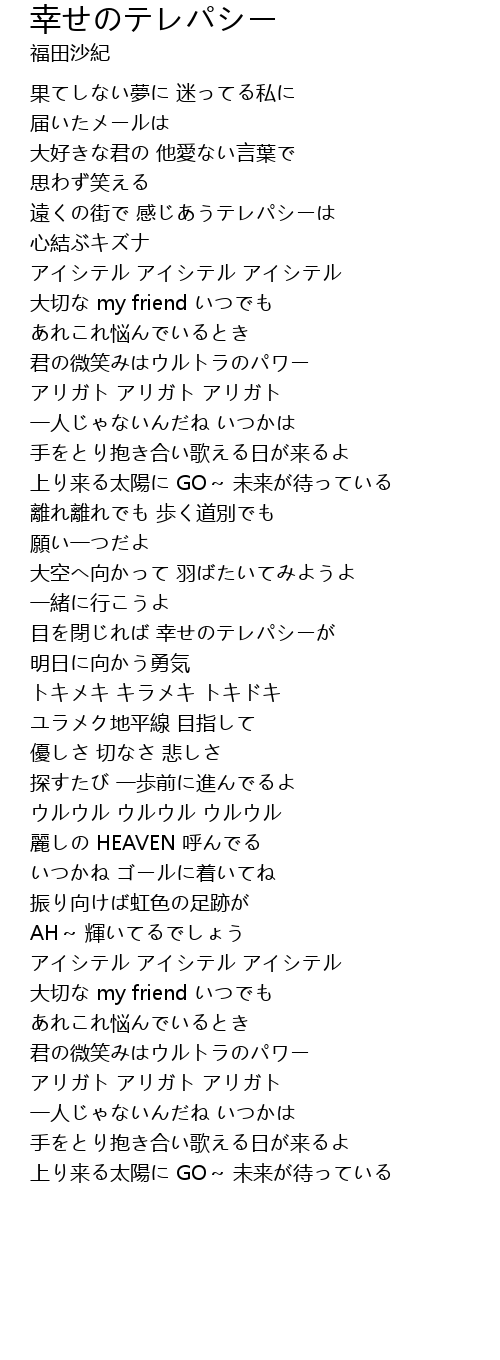 | 目を閉じれば 幸せのテレパシーが | |
