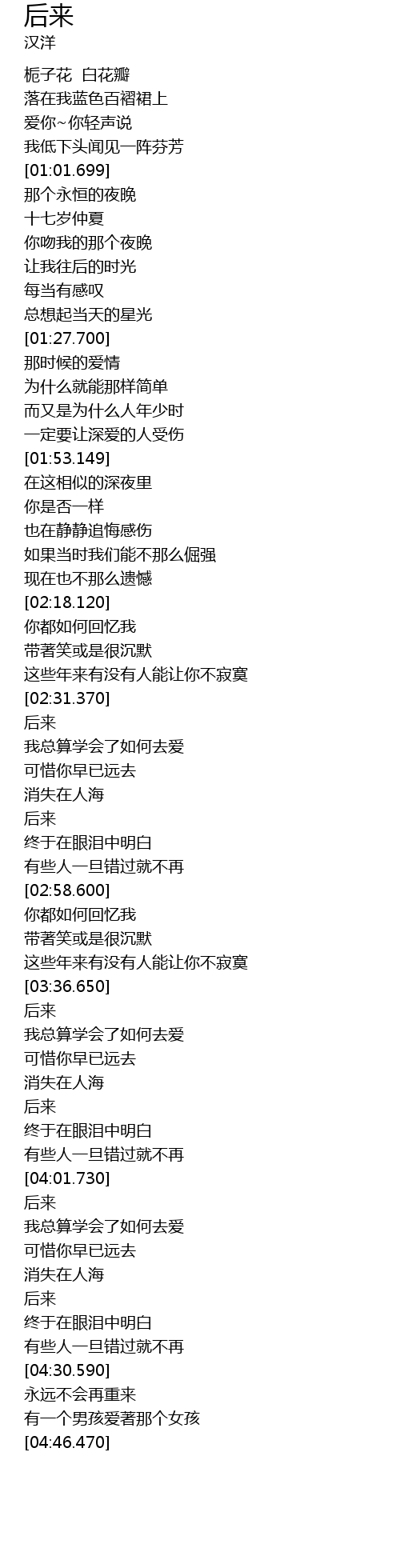 | [04:32.659] | yǒng yuǎn bú huì zài chóng lái |