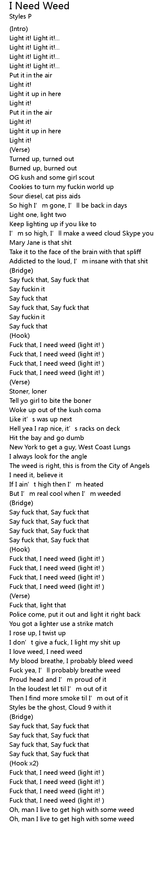 | I love weed, I need weed | |