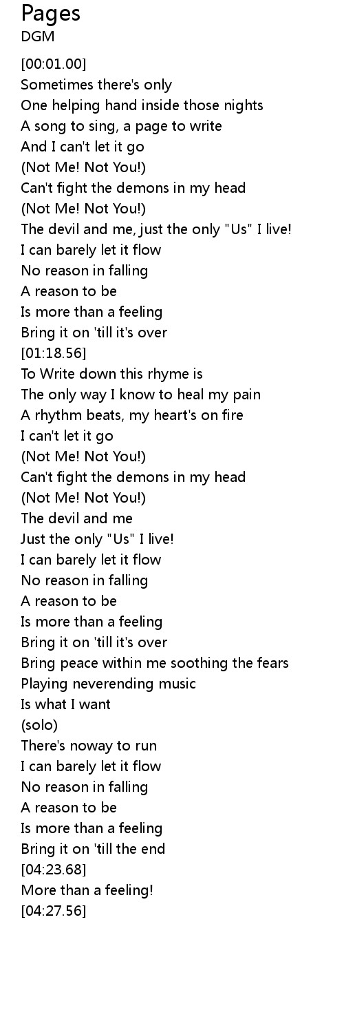 | [00:54.05] | The devil and me, just the only "Us" I live! |