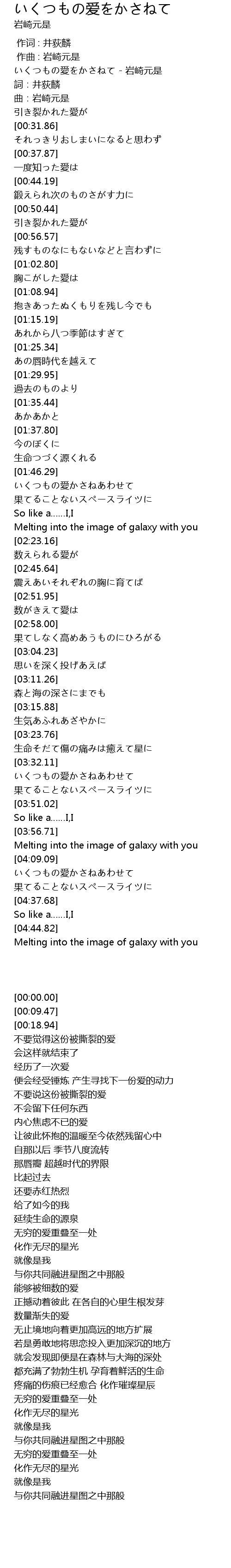 | [00:00.00] | いくつもの愛をかさねて - 岩崎元是 |