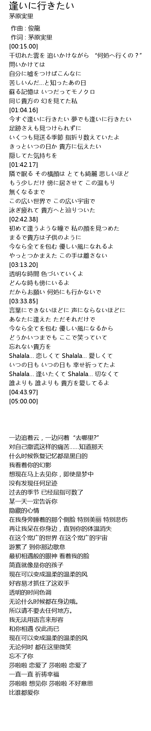 | [04:25.49] | Shalala… 逢いたくて Shalala… 切なくて |