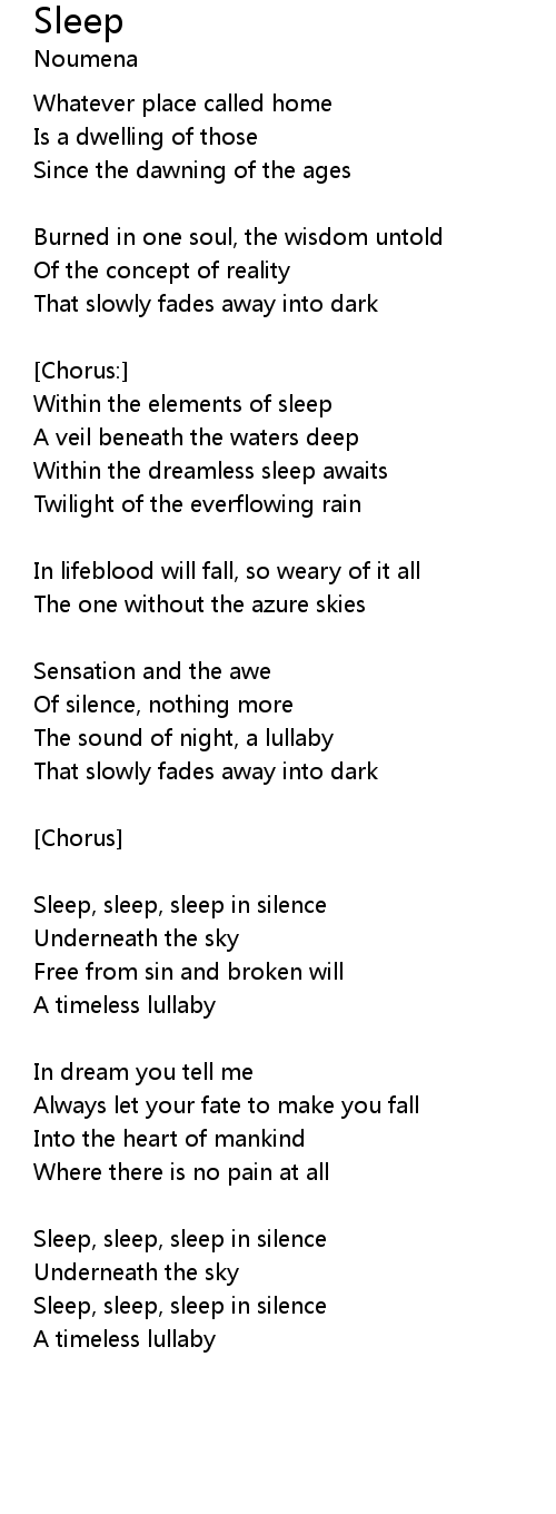 Sleep, sleep, sleep in silence |