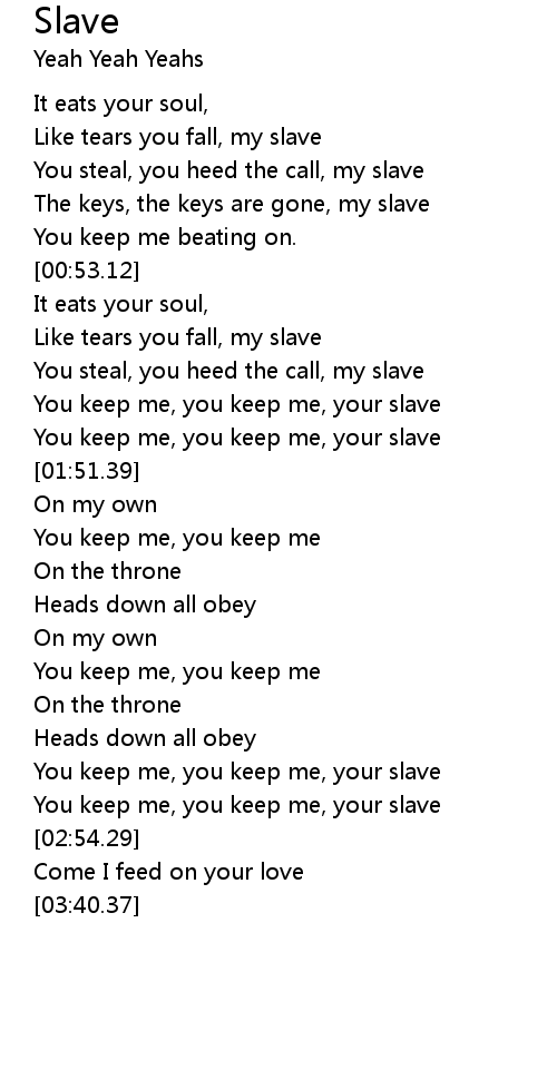 You keep me, you keep me, your slave |