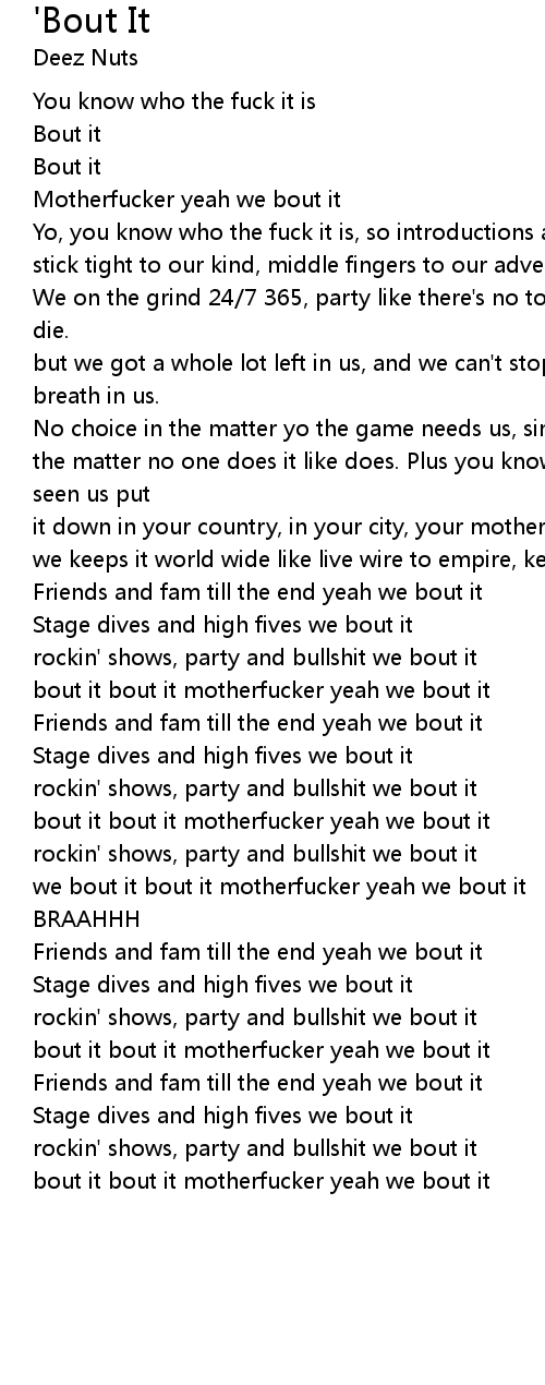 bout it bout it motherfucker yeah we bout it