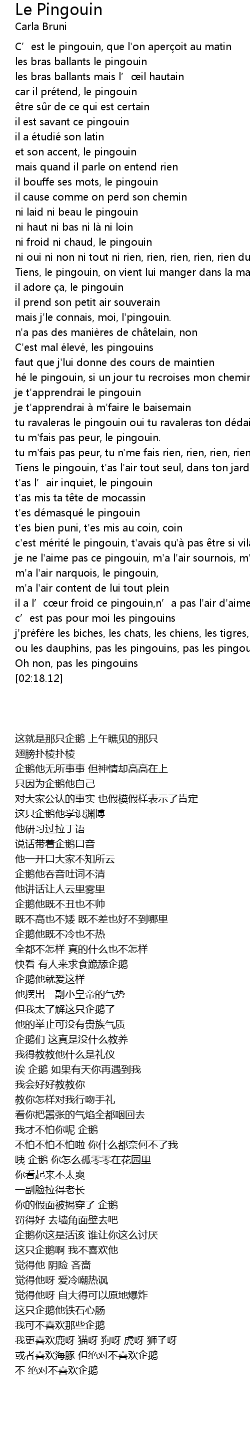 | [00:11.19] | car il pre tend, le pingouin |