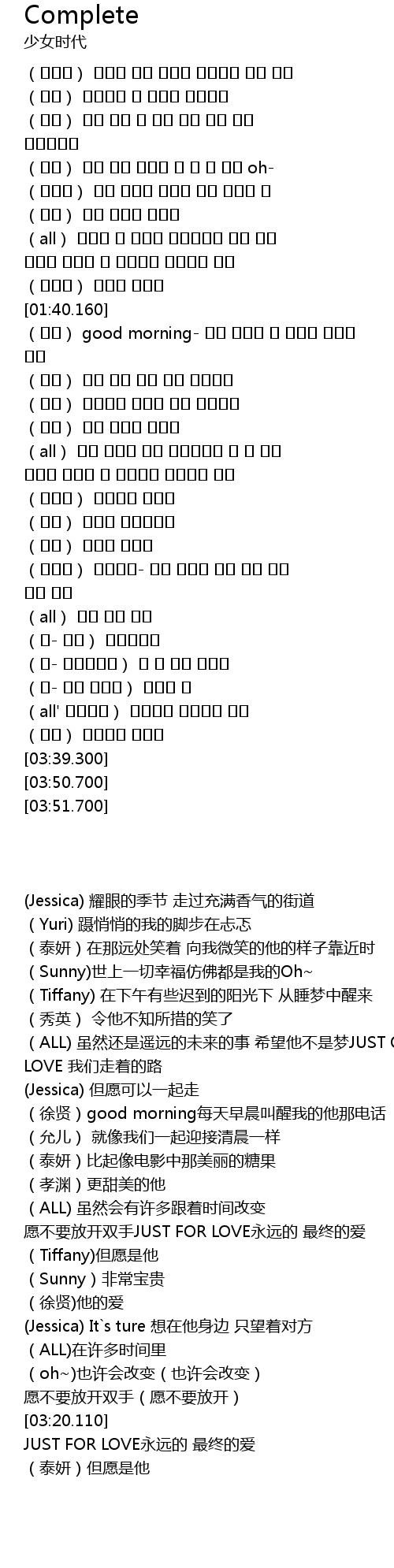 | [02:56.780] | (Jessica) It`s ture 想在他身边 只望着对方 |
