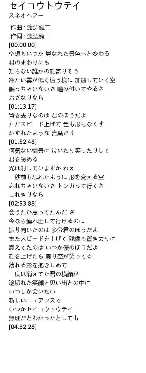 | [02:34.17] | 一秒前も忘れたように 形を変える空 |