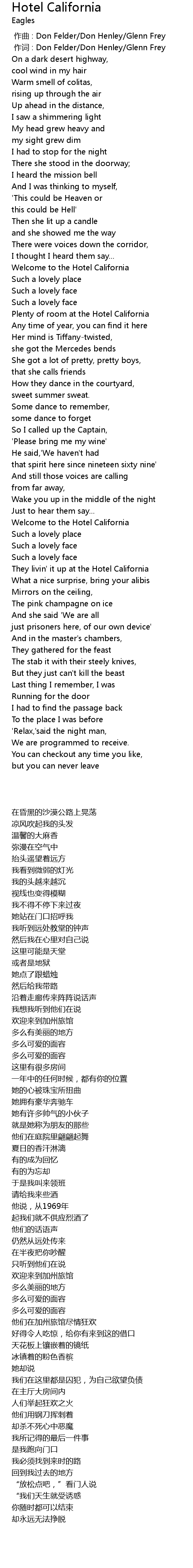 | [01:43.780] | 欢迎来到加州旅馆 |