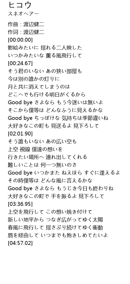 | [03:13.58] | Good bye さよなら もうじき今日も終わりね |