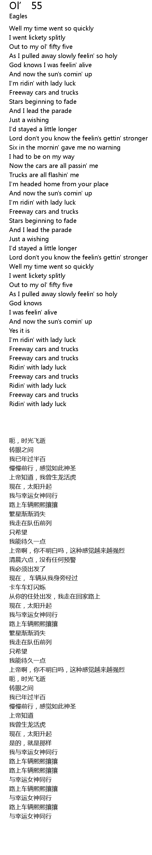 Out to my ol' fifty five |