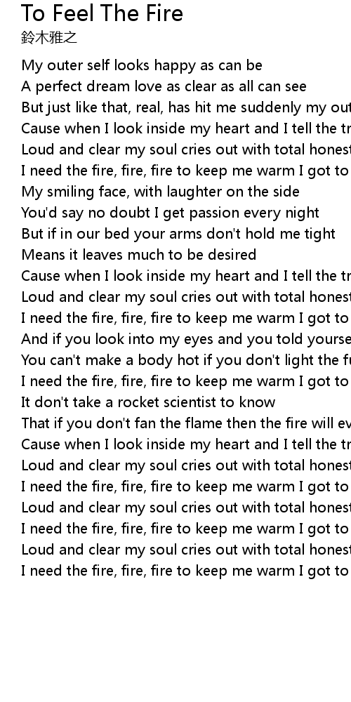 I need the fire, fire, fire to keep me warm I got to feel the fire |