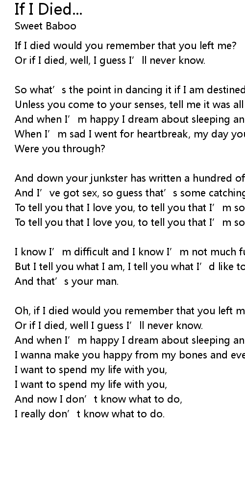 | 歌曲 | If I Died... |