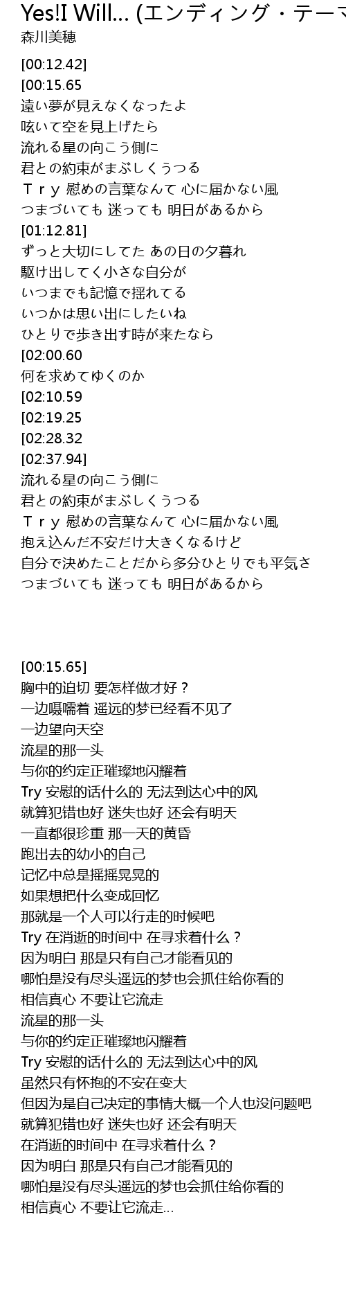 | 歌曲 | Yes!I Will… (エンディング・テーマ) |