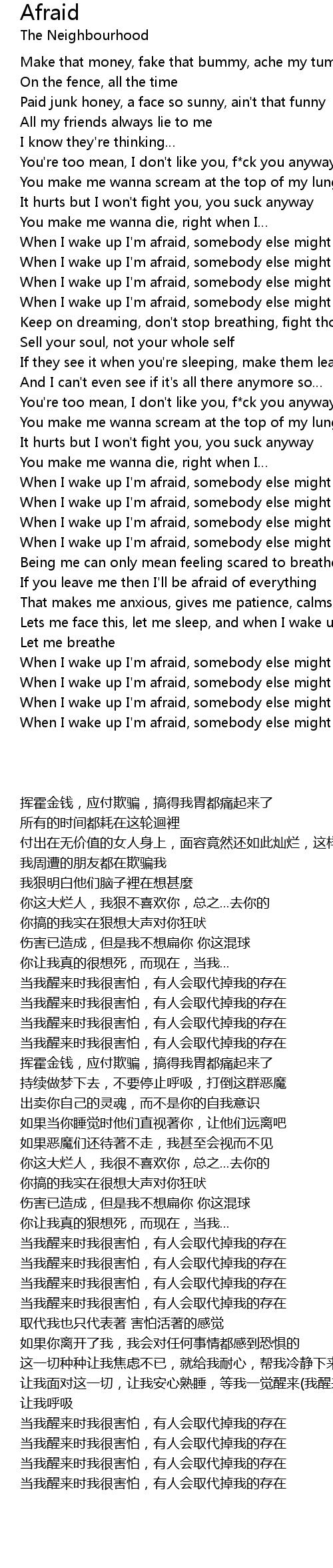 | [03:21.680] | 当我醒来时我很害怕,有人会取代掉我的存在 |
