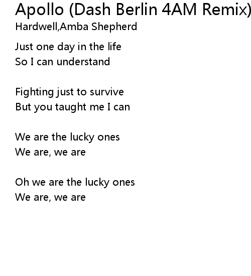 | 歌曲 | Apollo (Dash Berlin 4AM Remix) |