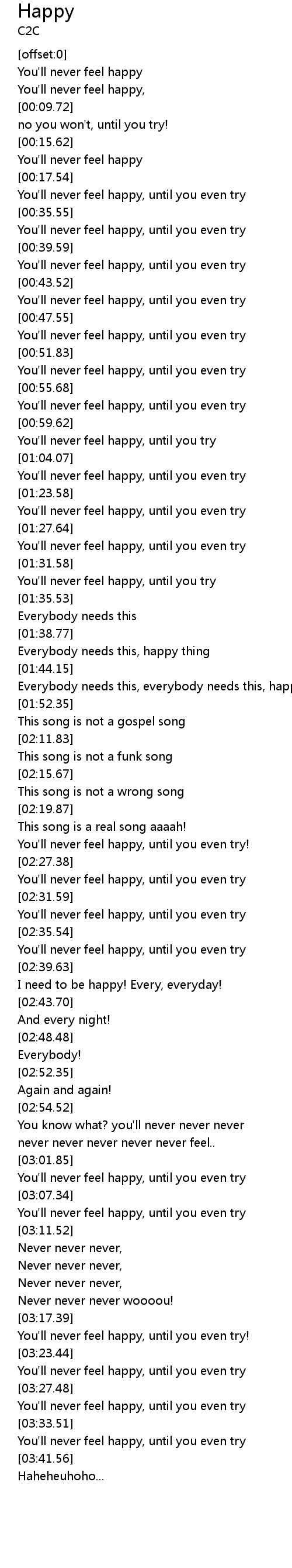 [02:41.43] I need to be happy! Every, everyday!