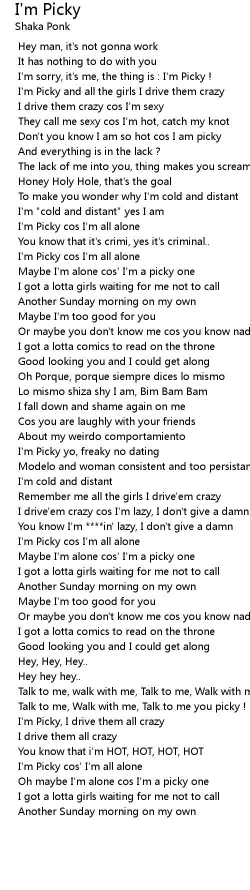 I'm Picky cos I'm all alone |